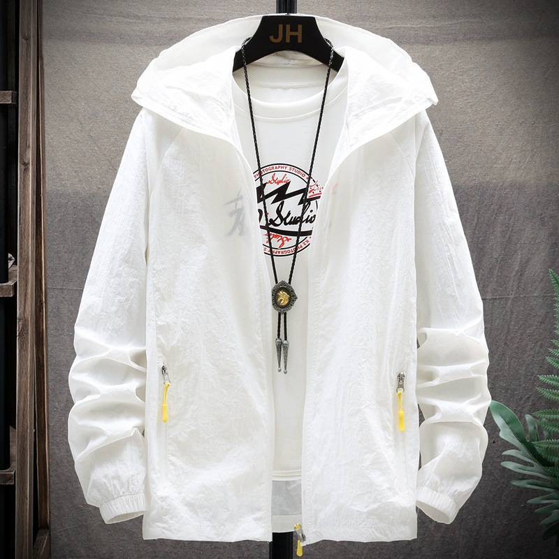 夏のアウトドアジャケットの日焼け止め服の男性コートのファッションコートの男性式の薄いタイプの通気性の青少年
