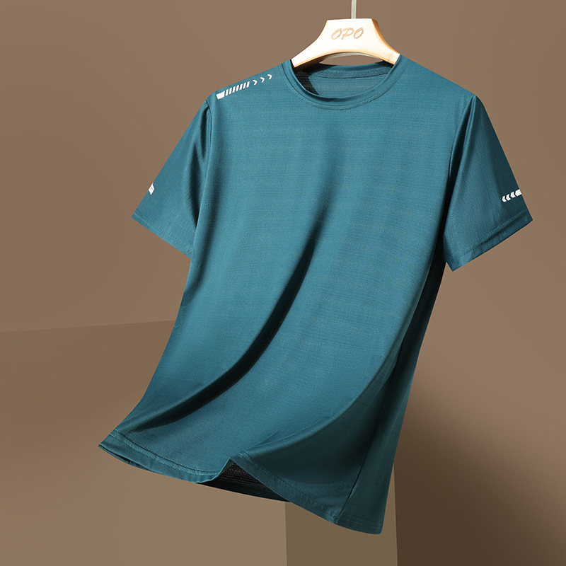 氷糸速乾走量の半袖tシャツ男の夏の薄い運動速乾高品質tシャツ