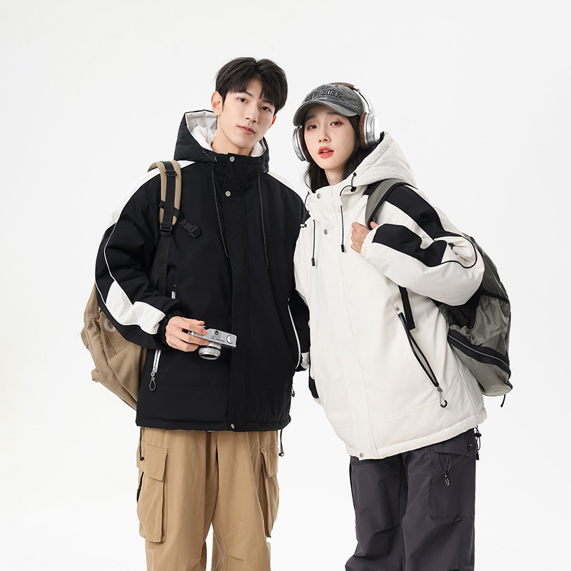秋の新商品のカジュアルな帽子のジャケットと綿の服の男性の女性のカップルの屋外の機能の突撃服の男性