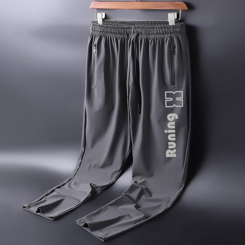 氷糸カジュアルパンツ男性夏グレー薄い氷糸速乾ズボンカジュアルパンツゆるい男ズボン束足通気性