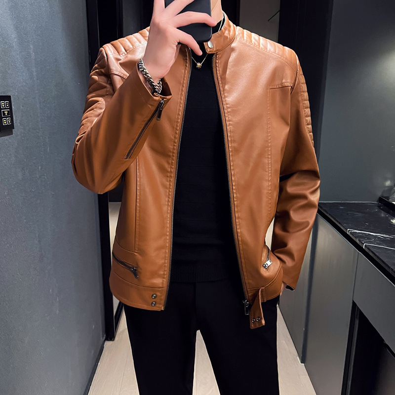 男性コートの男性秋冬の革の服のジャケットのメンズの新型の流行の韓国版の修身の薄いタイプのファッションの機関車の服のファッション