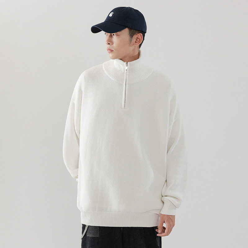 高品質半高ジッパー襟ニット落肩袖セーター (二次開発可能)