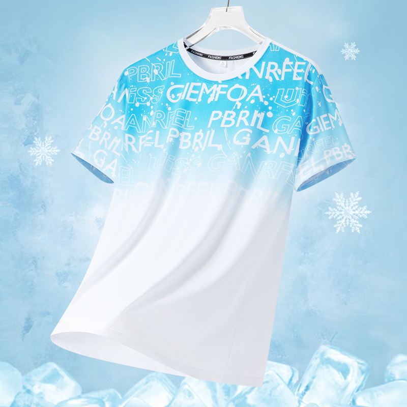 夏の新型の氷感の温度を下げる弾力性の氷の半袖のカジュアルな百合tシャツの男性