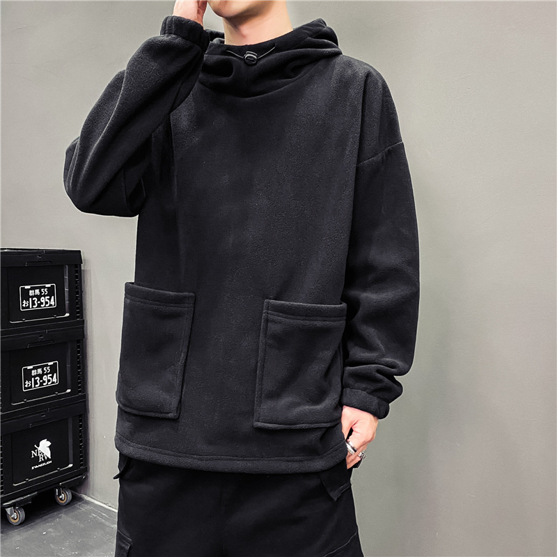秋冬の男性の新型の立襟の衛衣は粒の絨毛を揺らして潮の港の風のゆったりしている頭の学生をかぶせます。