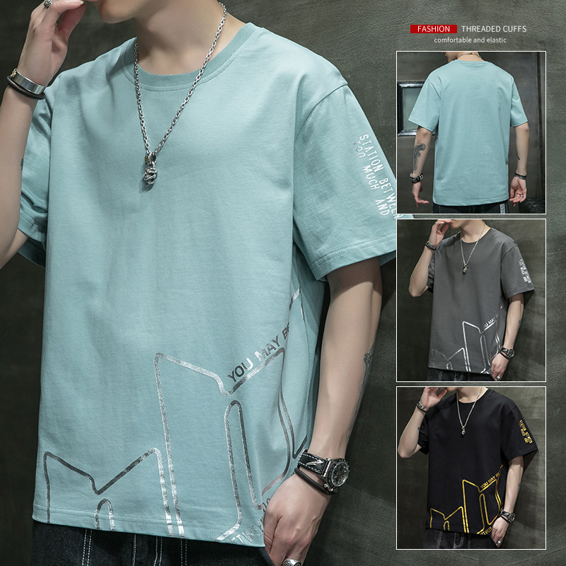 依陽半袖tシャツ男性夏2021韓国版ファッション箔押しファッションゆるいカジュアル半袖