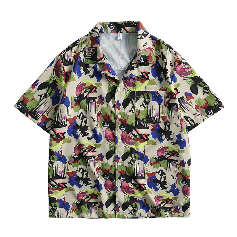 新型男性街頭ファッションリゾート風全版プリントクロスボーダー欧ヤード半袖シャツ
