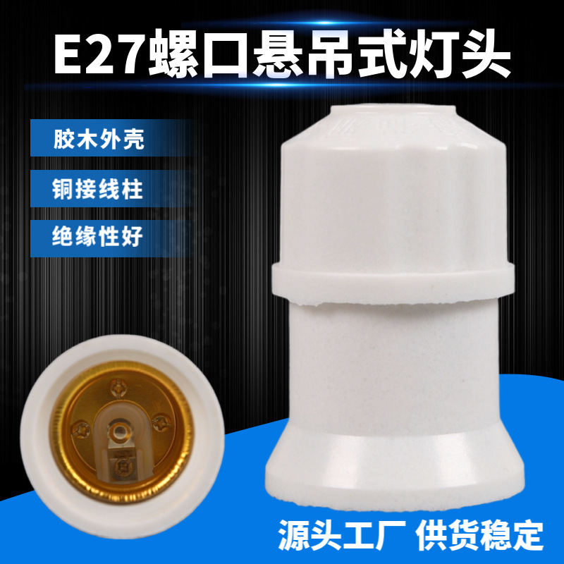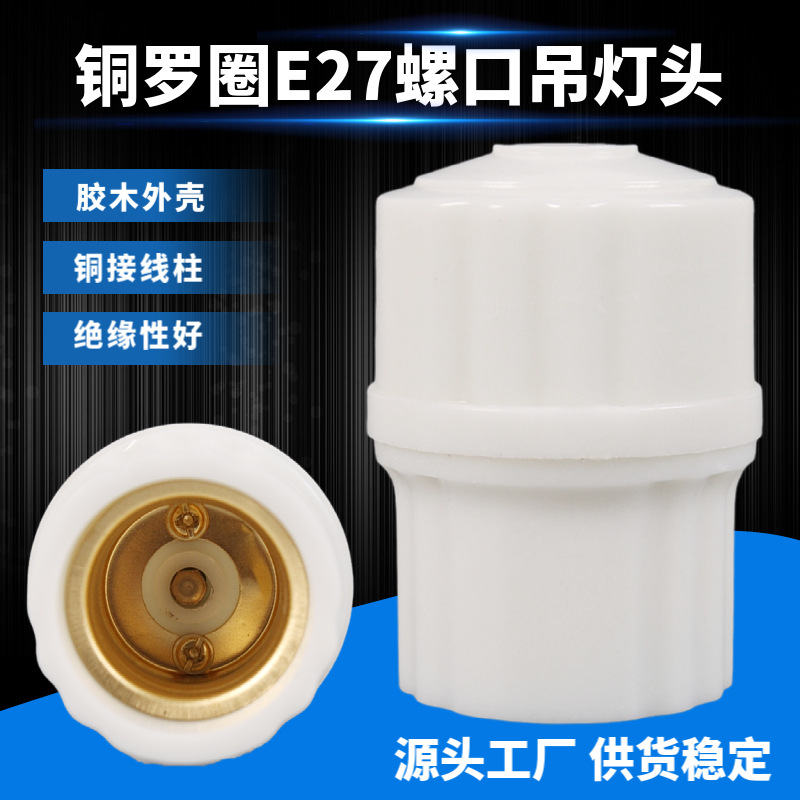 銅羅リング吊り下げ式厚手のランプヘッドの白いランプホルダーe27ねじ口ランプホルダー銅柱ねじ口シャンデリアヘッド難燃剤