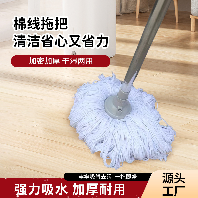 跡が残らない紐モップ 家庭用 ワンタッチできれいに 老式家庭用繊維モップ 乾湿両用 吸水モップ