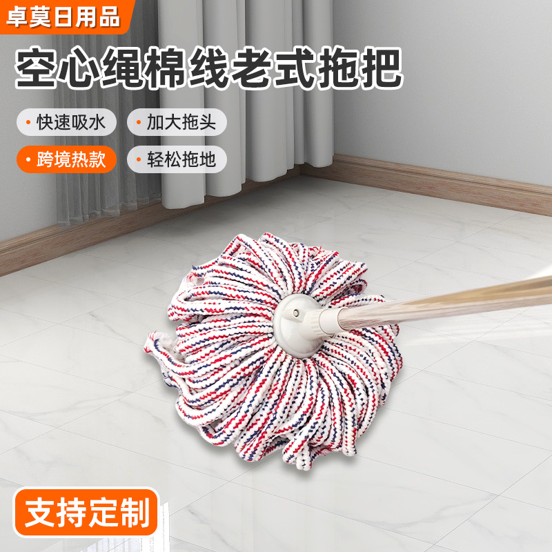 中空ロープモップ、平頭、昔ながらのモップ、吸水・除塵、ホテルの清掃用品、怠け者のアーティファクト、木製ポールモップ