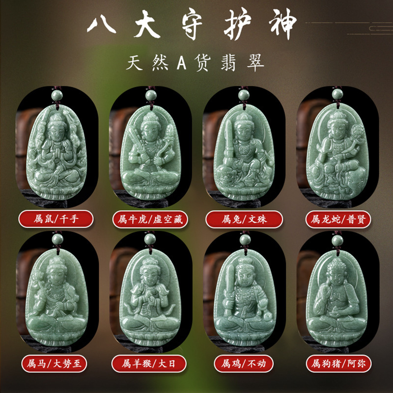 ミャンマーa品天然翡翠八大守護神生肖玉ペンダント本命年仏主観音菩薩玉ペンダント