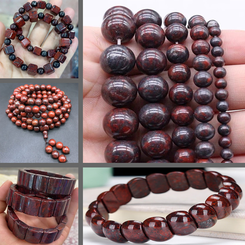 新疆紅一丁手串 鶏血石磁性虎牙竹節手牌 隕石能量石丸玉手飾りネックレス
