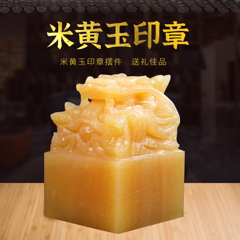 新しい天然米黄玉蛇口印鑑黄玉九龍玉璽印鑑手作業彫刻工芸品玉置物