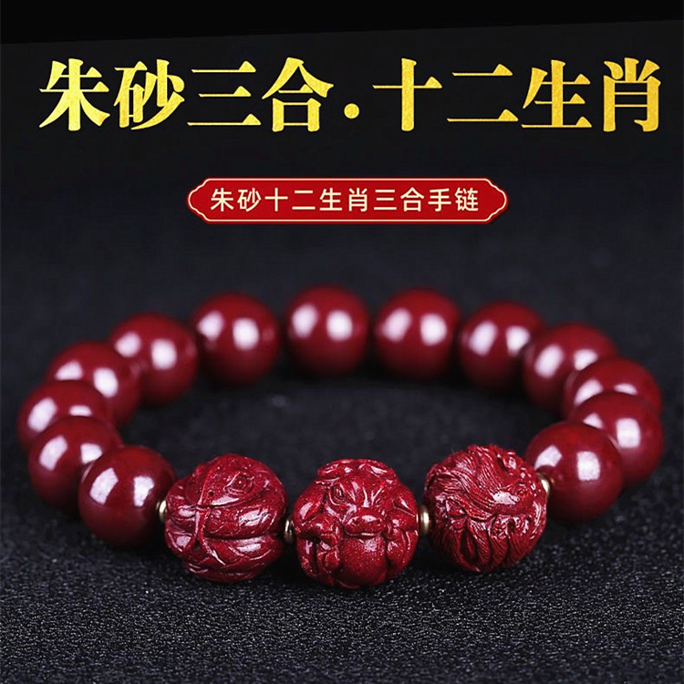 朱砂三合手串本命年男女金12生肖紫金砂ブレスレット三合生肖仏珠手串プレゼント