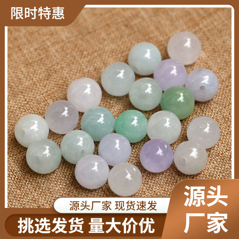 ミャンマー翡翠玉珠蓮散珠卸売り円形珠緑白蓮散件diyアクセサリーブレスレットネックレス