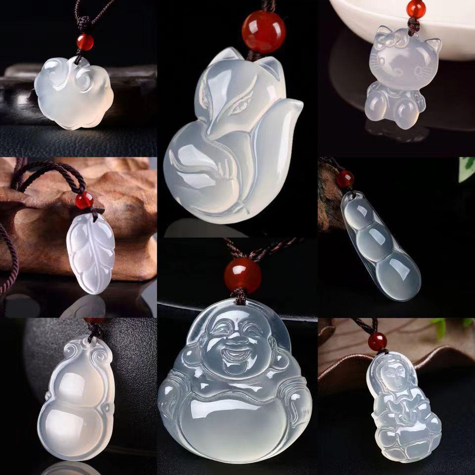 卸売高級白玉カルセドニーペンダント観音仏平安扣貔貅福豆玉ネックレス天然翡翠ペンダント