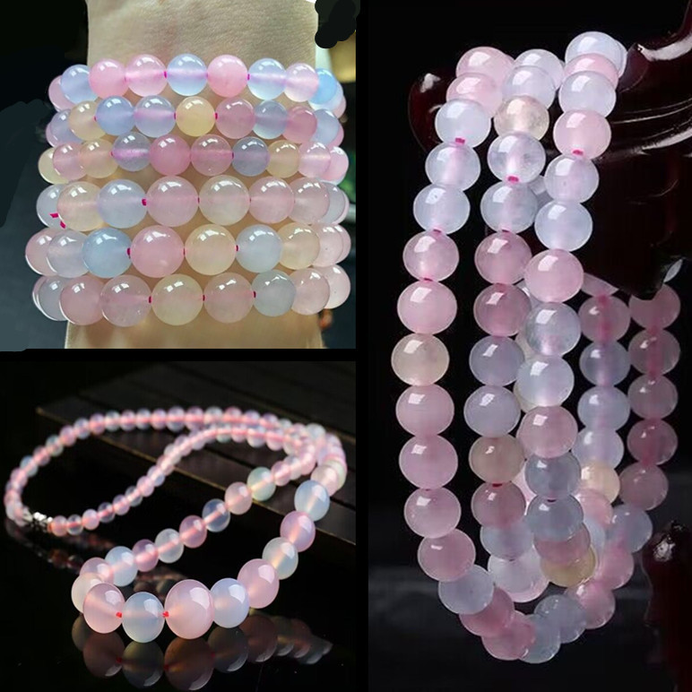 モルガン石手串卸売り粉モルガン結晶透氷種キャンディー色石英岩円珠ブレスレットネックレス生放送商品