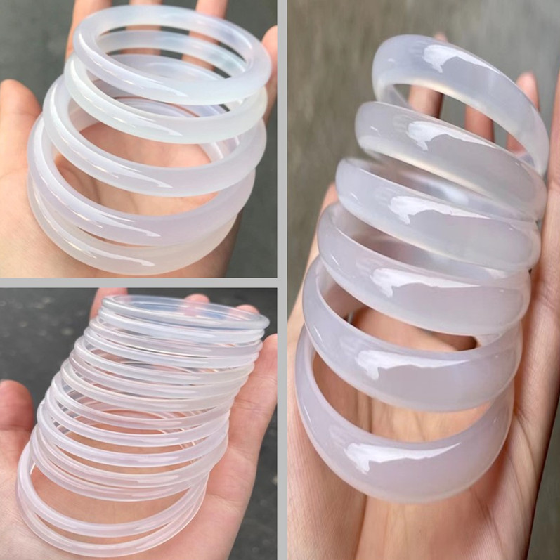 ブラジルの氷種の白玉髄ブレスレットの細い氷透瑪瑙のブレスレットの白氷の白月光美人の丸い玉の腕輪