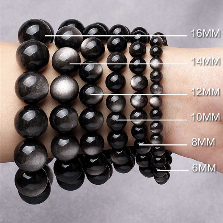 天然銀色の黒曜石の手串銀曜石の男女の丸い玉のブレスレットの金曜石の玉器の手串は生放送します。