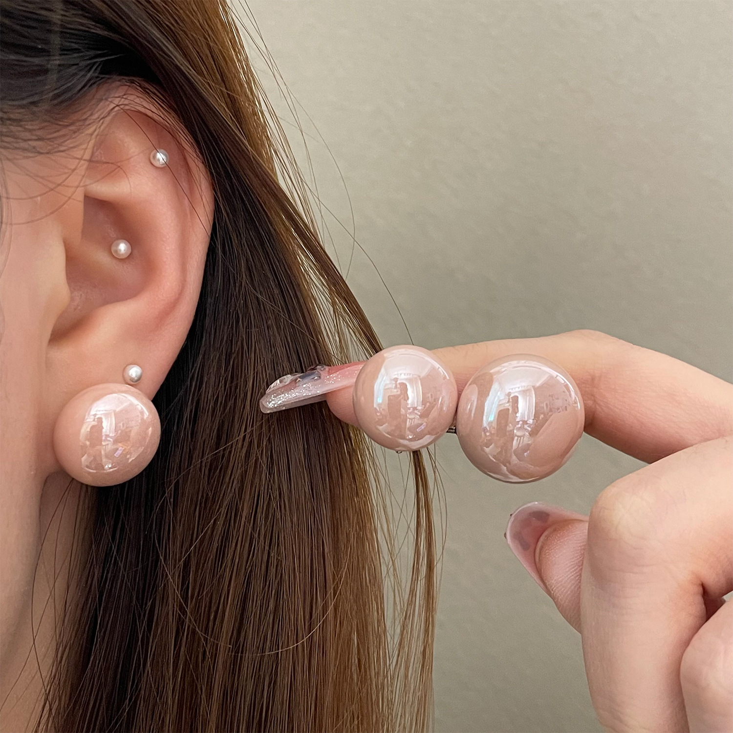 高級感誇張レトロ超大型パンビーズイヤリングピアスs925銀針シンプル個性真珠ピアスイヤリング