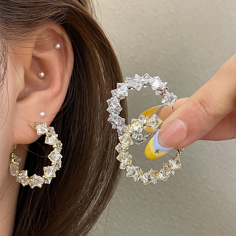 イヤリング 2025 新しいトレンディなライト高級ハイエンドヨーロッパとアメリカの誇張された菱形イヤリングインターネット有名人の女性の大きなイヤリング
