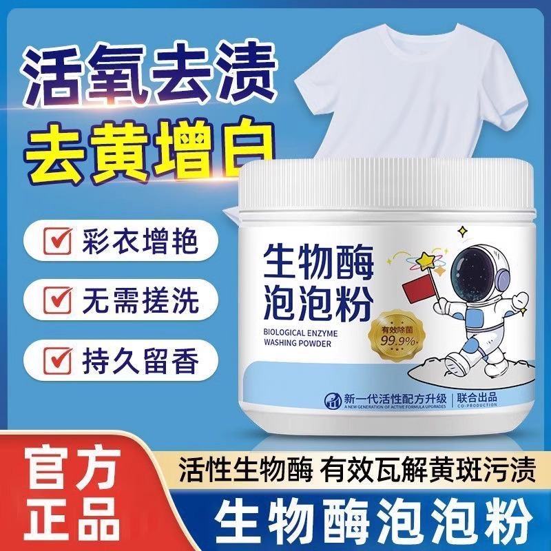 生物酵素の泡の粉の服は黄色に行って汚れを取り除きます。