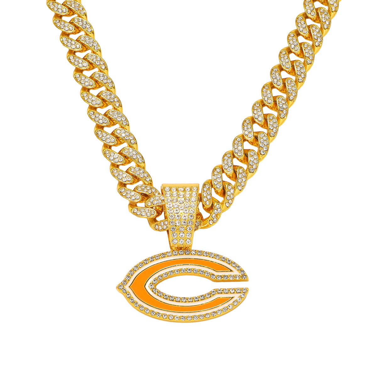 ヨーロッパとアメリカのクロスボーダー新しいメンズフルダイヤモンドチェーンヒップホップスタイルパーソナライズされたオーバルチームロゴペンダントネックレス