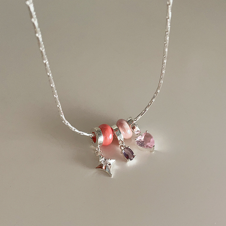 カラージルコン星芒愛流蘇ネックレス女性韓国の大衆デザイン個性百合気質首鎖鎖鎖