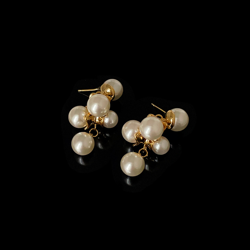 フランスのレトロなブドウの真珠の金属のピアスの女性の大衆の独特な個性のファッションの気質の優雅なイヤリングの耳飾り