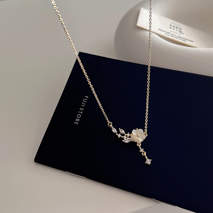 小衆デザイン感ジルコンの枝の貝殻の花のペンダントのネックレスの女性の韓国の個性のシンプルな組み合わせの気質の首のチェーン