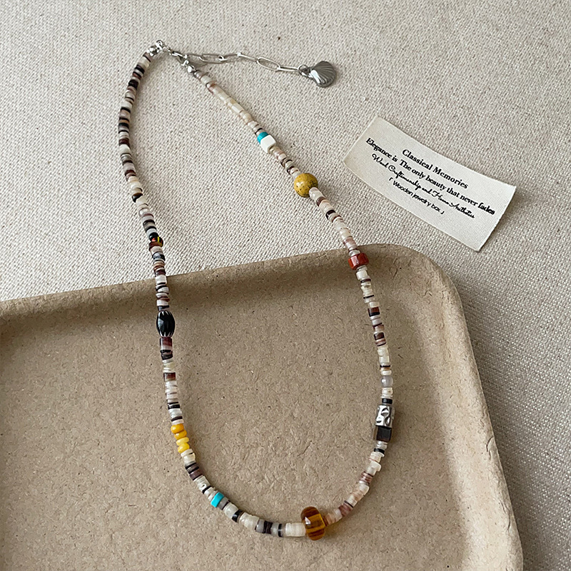 レトロで軽くて豪華で多彩な天然石のビーズのネックレスの女性の大衆の高級感の気質はファッションの首の鎖の鎖の骨の鎖を合わせます。