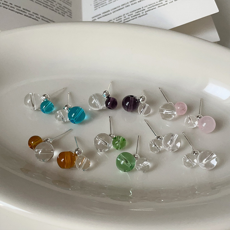 夏の新鮮で多用途な女性用のカラフルな透明樹脂ボールイヤリング、ハイエンド、絶妙でファッショナブルなイヤリングです。