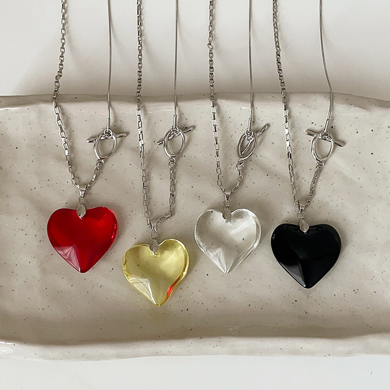 トレンドinsカラー透明愛の長いネックレス女性シンプルで個性的なファッショントレンドの首飾り