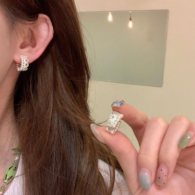 パールジルコンレースエッジ多層イヤリング女性用フレンチレトロライトラグジュアリーエレガントファッショントレンド多用途イヤリング