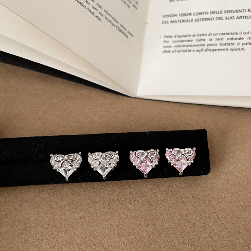 甘くてクールな個性のクリスタルラブリボンイヤリング、女性用、ハイエンド、ファッショナブルでトレンディーな多用途イヤリング。
