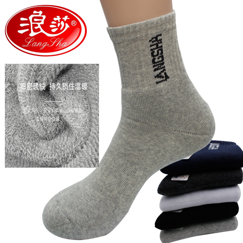 浪莎靴下男性精練綿は冬の中筒男性靴下に保温タオルストッキング綿靴下を厚くした