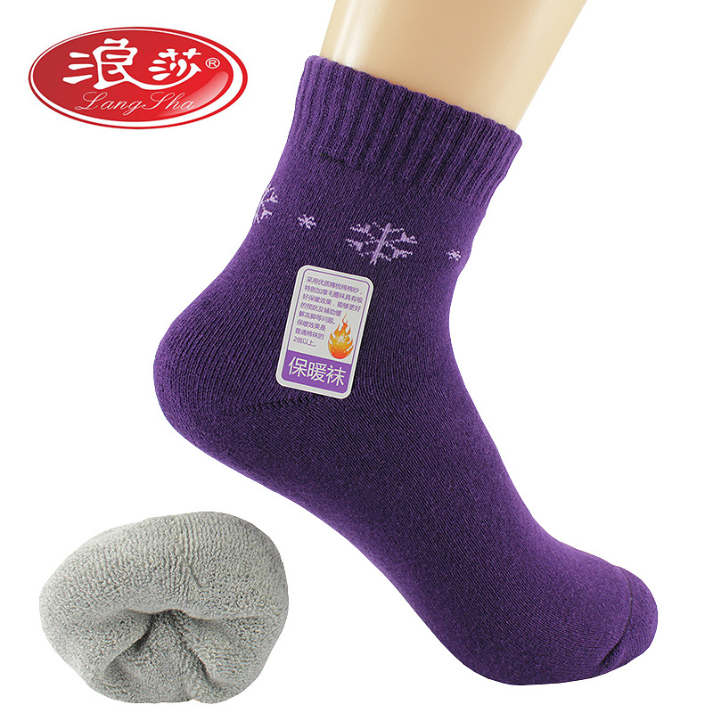 浪莎の女性の精練綿と綿の厚い暖かさの毛輪の靴下の冬の保温のタオルの靴下の女性の精練綿の純色