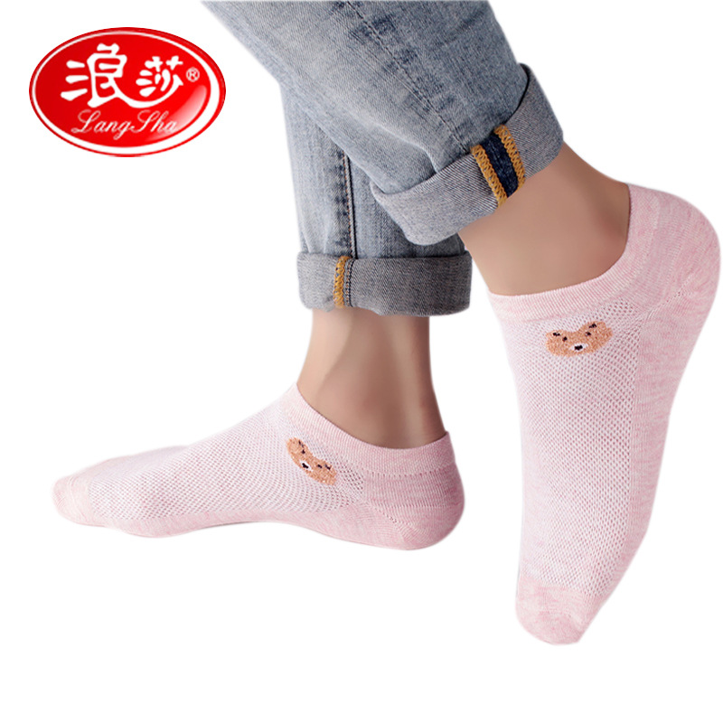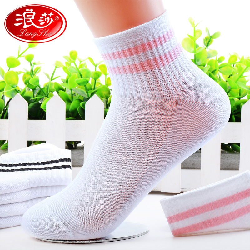 浪莎純綿靴下レディースソックス浅口春夏薄手防臭吸汗日系棉インスタ潮中筒
