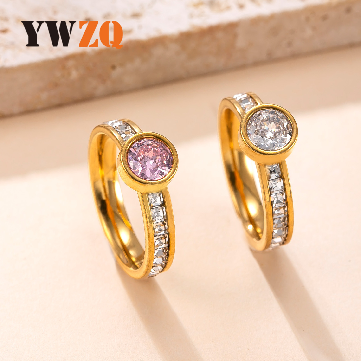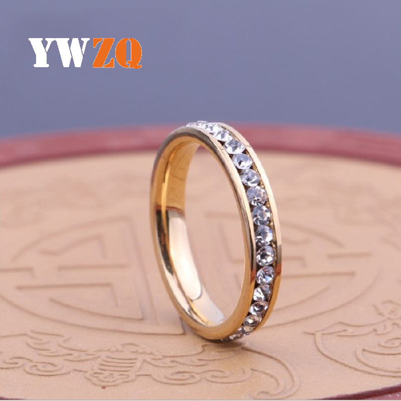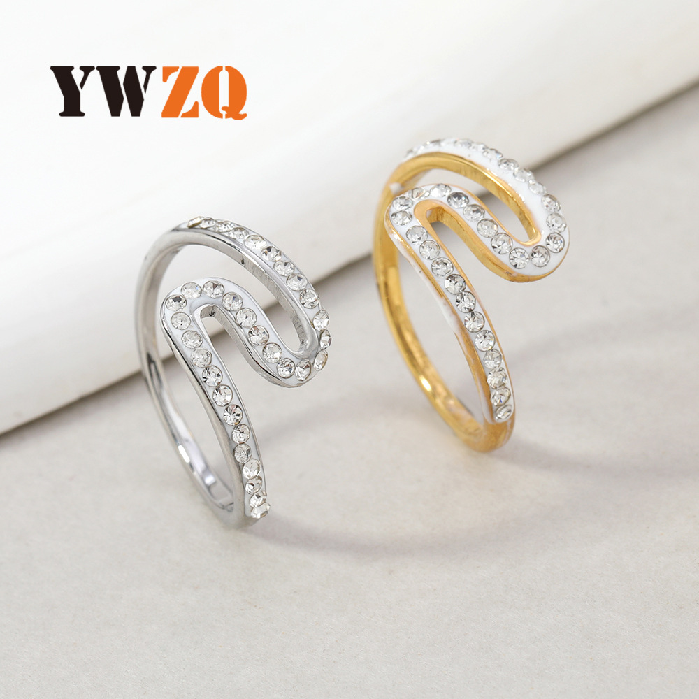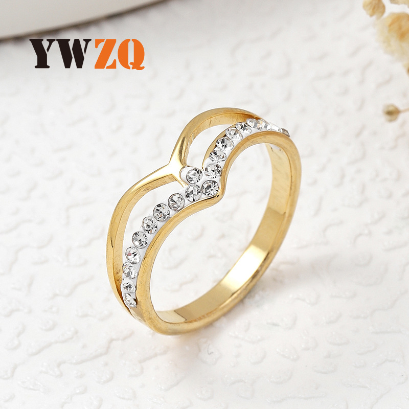 国境を越えた売れ筋のファッショナブルなステンレス鋼リング溶接ブランド象嵌ラウンドジルコンリング女性ニッチデザインチタン鋼ジュエリー工場