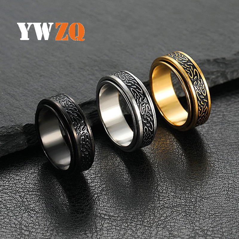 国境を越えた異域風ステンレスアクセサリーの腐食油の不規則な筋目はチタン鋼の指輪の三色を回すことができる