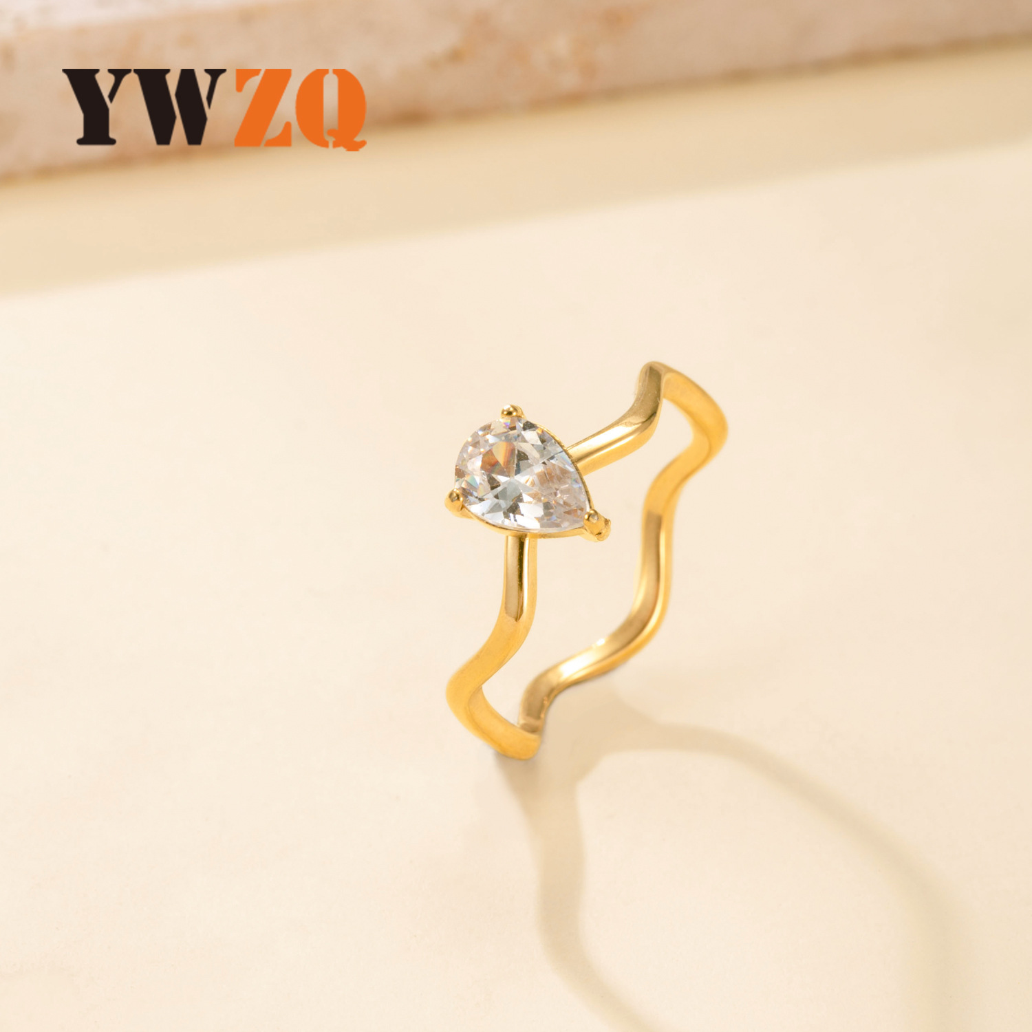 欧米風ファッションステンレス指輪水滴形ジルコン指輪女性個性百合チタン鋼アクセサリーメーカー直販