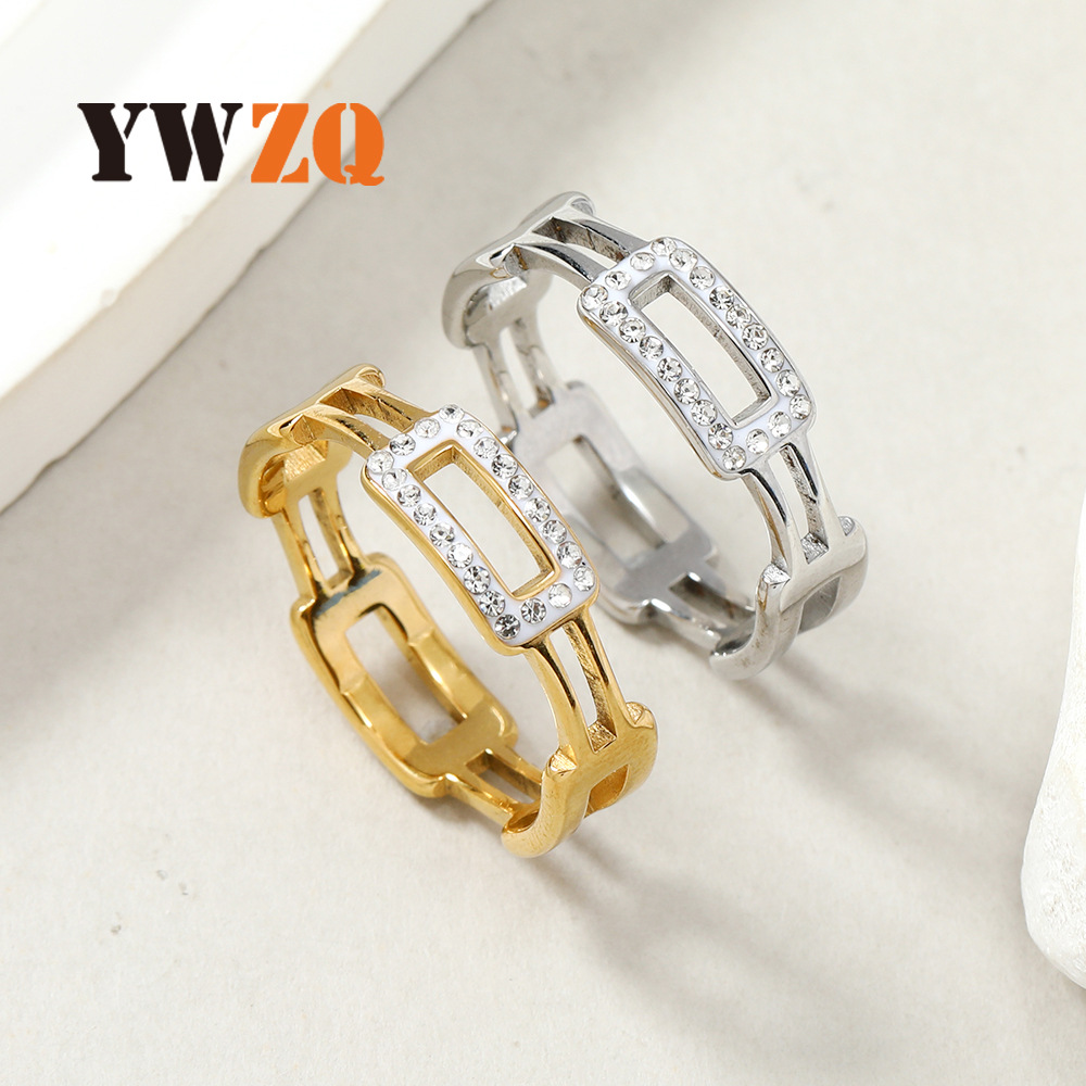 欧米のステンレスのアクセサリの女性のファッションの四角形の幾何学の陶泥はドリルのチェーンのチタンの指輪を入れます。
