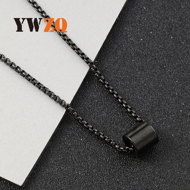 クロスボーダー供給ステンレスアクセサリーシンプルパンク風黒色光沢円柱ペンダントチタン鋼ネックレスメーカー