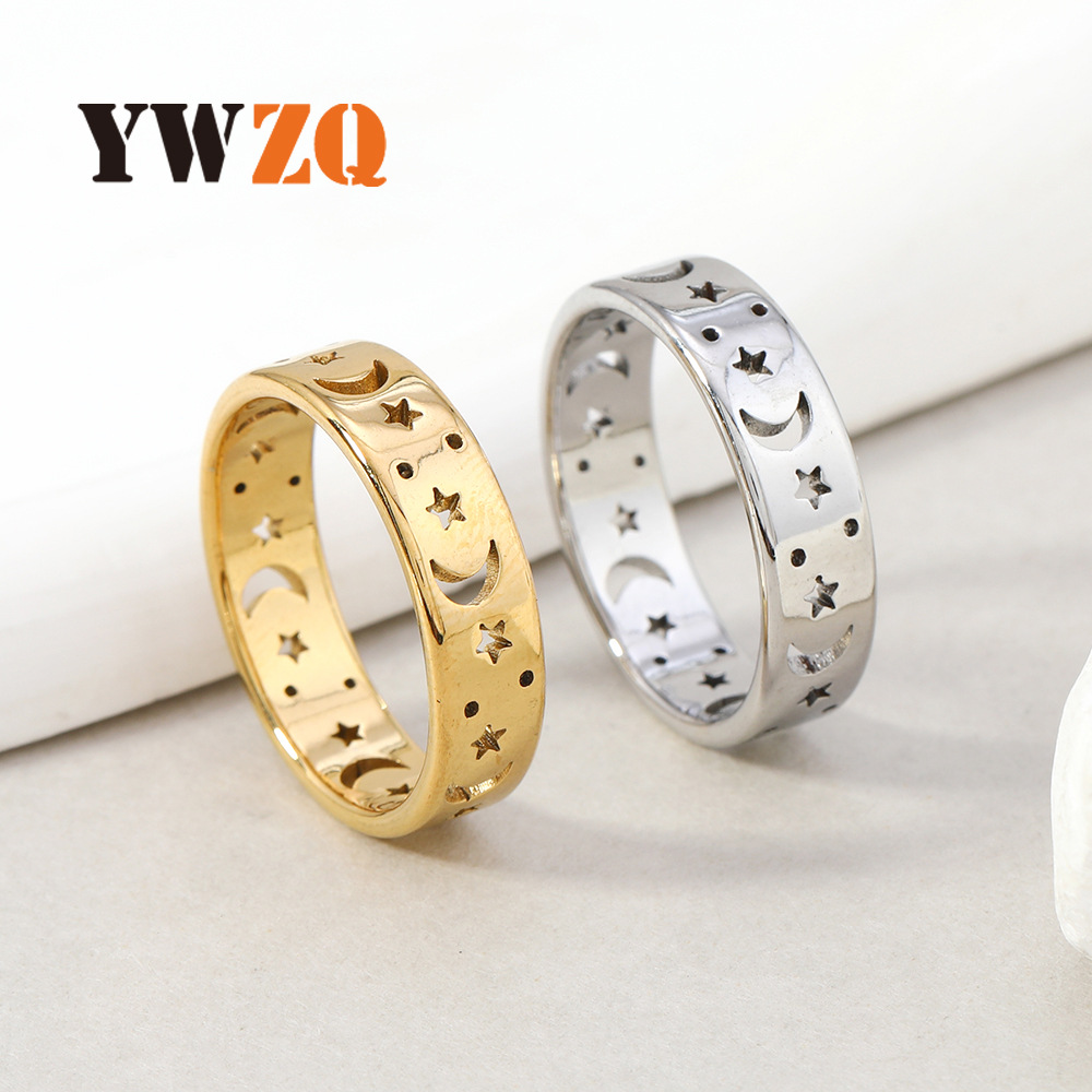 2024欧米のファッションステンレスの指輪の透かし彫りの星の月の丸い指輪の男女の通用する指輪の装飾品