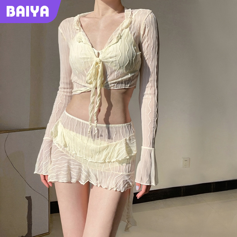 ホットガールスカート風温泉ビキニスプリット水着水着レディース日焼け止め長袖卸売レディース痩身4点セット純粋な欲望