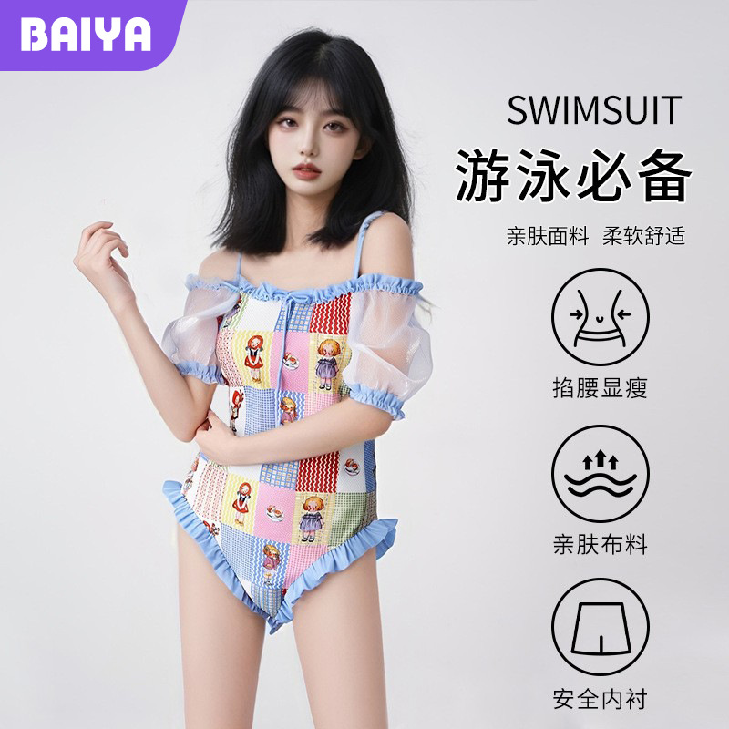 純粋な欲望カバー腹プリント半袖保守的な水着女性の温泉休暇かわいい女の子日本のワンピース水着女性痩身