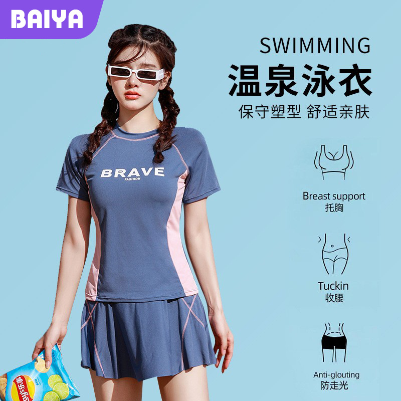 新しい卸売ホリデー水着卸売水着女性の保守的なファッションスポーツスタイルツーピースセット温泉学生分割