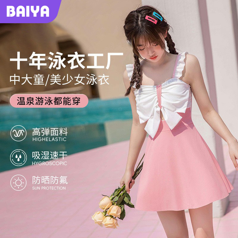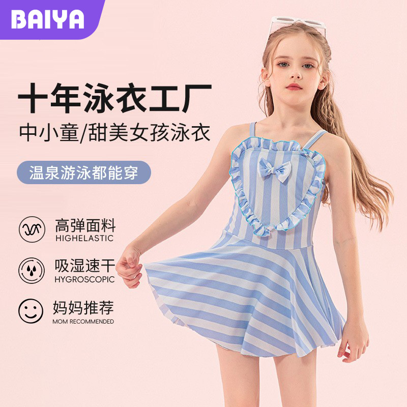 甘い子供用水着女の子日焼け止め水着女の子小さな新鮮な新しい温泉スカート水着ワンピース中型および大型子供用