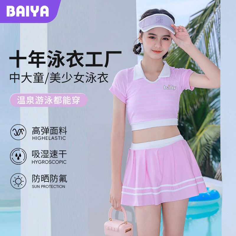 学生温泉水着スカート分割2025水着女の子休暇サスペンダーガールボクサーボール大子供イン新しいスタイル