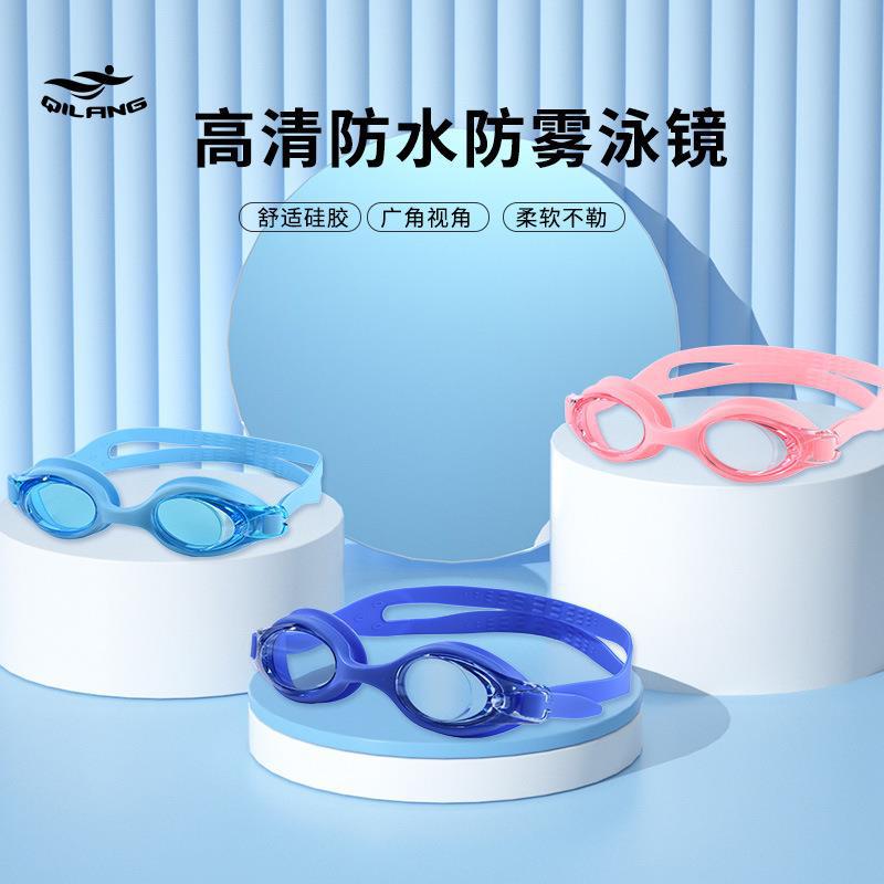 Qilang シリコーン男性と女性の高精細防水既製水泳ゴーグル電気メッキ水泳ゴーグル大型フレーム水泳ゴーグル防曇大人なし