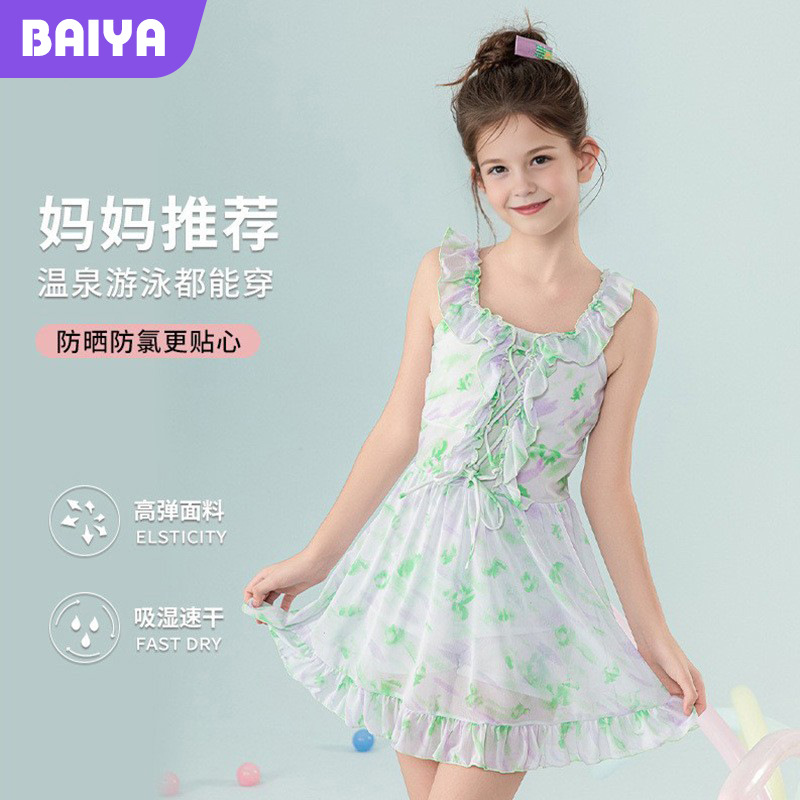 スイート2025外国風新作子供用水着、中型・大型子供用水着、女の子用フレッシュサスペンダードレス、休暇なし